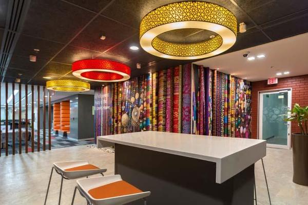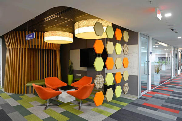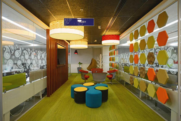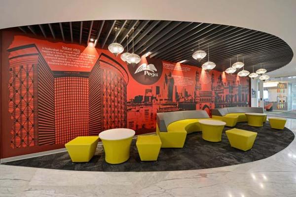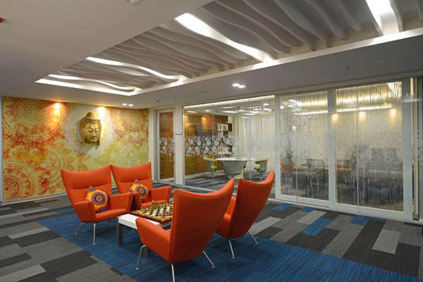 上海辦公室裝修公司-領企裝飾今天與大家分享的是,印度海德拉巴Pegasystems辦公室裝修設計。其辦公室裝修設計充分體現(xiàn)了熱情洋溢的異域印度風情。