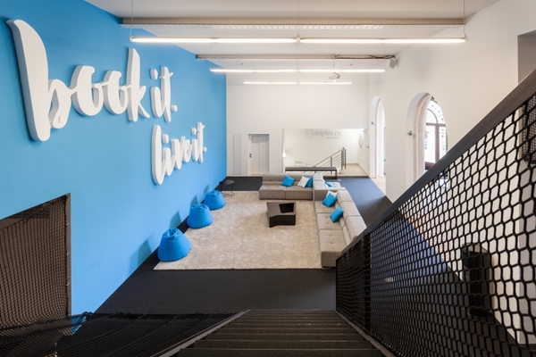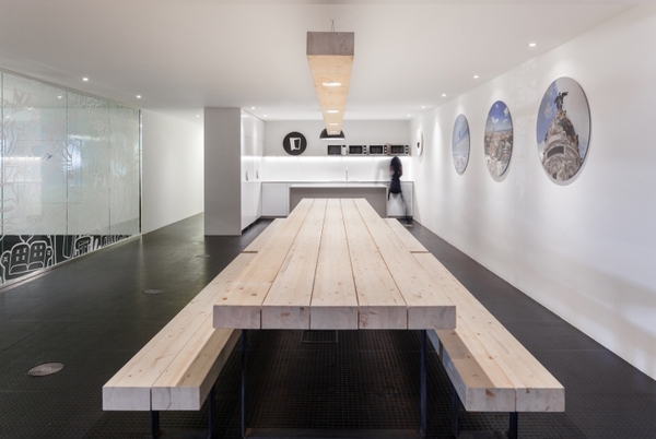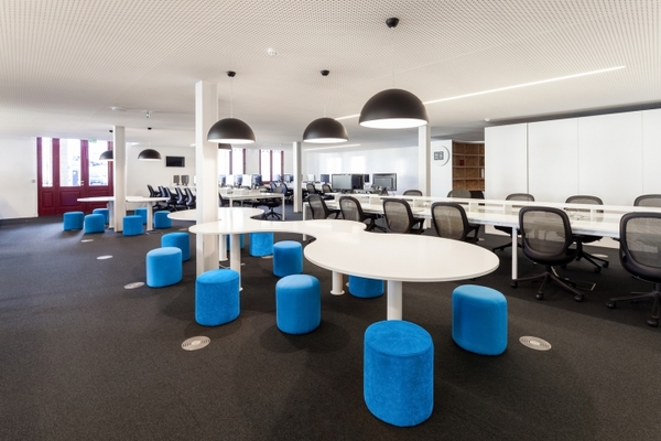 其辦公室裝修通過(guò)創(chuàng)造一個(gè)開(kāi)放的工作空間,加強(qiáng)了公司各部門(mén)之間的交流。通過(guò)在開(kāi)放空間之中的沉思場(chǎng)所的設(shè)計(jì)也達(dá)到了個(gè)人和集體的平衡。因此,小空間通過(guò)固定的元素,如圖書(shū)館和半開(kāi)放會(huì)議室,或可移動(dòng)的家具,如一些用于 Skype 聊天的構(gòu)筑物,得到了巧妙的利用。