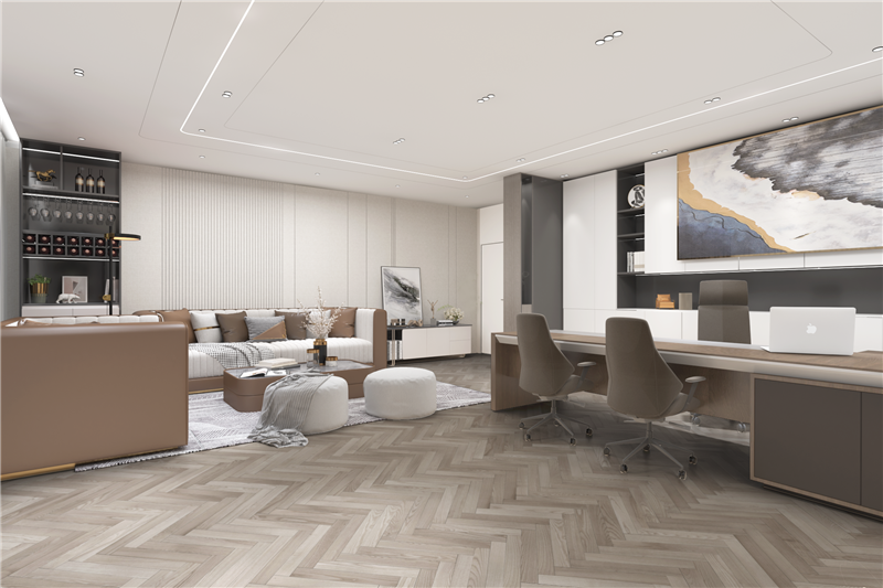 個(gè)人辦公室是相對(duì)獨(dú)立的空間,所以頂棚的燈光需求并不是很高,應(yīng)盡量采用令人舒適的自然光,如果自然光不夠充足,那么設(shè)計(jì)燈光時(shí)就要對(duì)工作面進(jìn)行重點(diǎn)投光,其余部分進(jìn)行輔助照明,這樣還能夠營(yíng)造出一定的藝術(shù)氛圍。