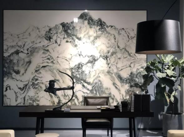 3、總經(jīng)理辦公室裝修,匠心獨(dú)具,辦公桌后的山水畫倚墻而立,成為整個(gè)房間的亮點(diǎn)所在,復(fù)古的潑墨大理石壁畫,淡泊的寫意感,氤氳肆意灑脫亦無重負(fù)的意境。白色的沙發(fā)與大理石圓桌相互配合,既保存了一以貫之的輕奢格調(diào),也不失商務(wù)談判應(yīng)有的沉穩(wěn)氣氛,并且充分保證了座位的充足。一對(duì)一的談判桌,配有相應(yīng)的茶具,滿足商務(wù)禮儀之需,也為整個(gè)空間增添了文化氣息。