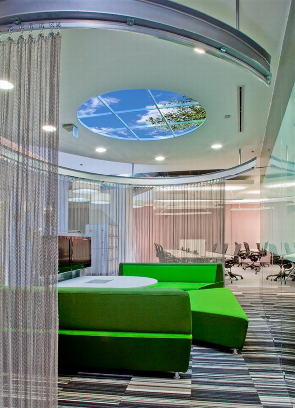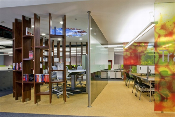 4、國外創(chuàng)意工業(yè)園區(qū)辦公室裝修設計:天棚采用玻璃鏤空,增加室內(nèi)亮度,造型迥異,增強視覺沖擊力。