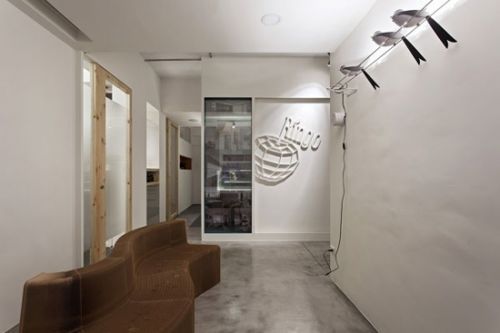 編輯點評:辦公室入口的面積相對較小,設(shè)計師很巧妙地采用矩形瓷磚、并且在末端采用深色瓷磚進行裝飾,顯出放射狀,有放大視覺效果的功能。