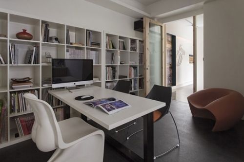 編輯點評:簡約的辦公室離不開合理的收納設(shè)計。清美學(xué)辦公室采用掛式收納,簡單的直線條對應(yīng)簡約風(fēng),與環(huán)境融為一體,同時發(fā)揮強大的收納功能。