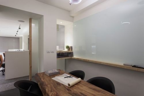 編輯點評:用矮墻隔斷出辦公區(qū)與公共區(qū),整體色調(diào)風(fēng)格一致,不脫離簡約風(fēng)的主題。