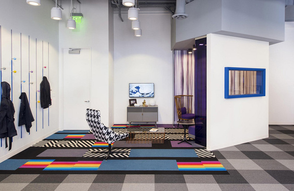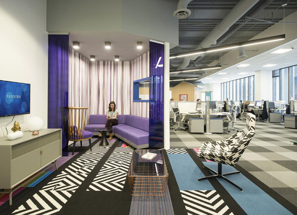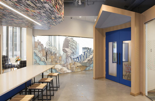 開放性的辦公區(qū),設(shè)計(jì)師使用餐廳質(zhì)感的訂制家具,取代以往的OA辦公家具,讓員工作業(yè)可以更加舒適愜意。設(shè)計(jì)師特別為業(yè)主規(guī)劃斜角天花及專業(yè)隔音系統(tǒng),讓每次聆聽音樂都是一場享受。