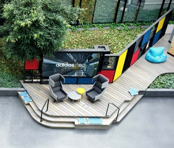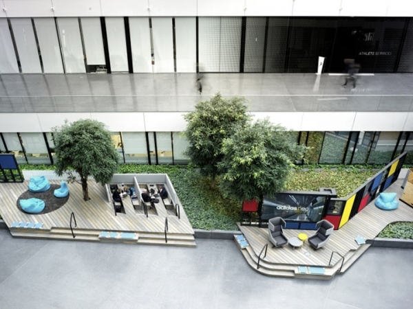 本色打磨的水泥地面、自然原色的木紋地板、大量的綠色植物,并注入契合品牌精神的時(shí)尚辦公理念,由此扭轉(zhuǎn)adidas品牌的傳統(tǒng)單一形象,塑造一個(gè)年輕、多元、時(shí)尚潮流的新形象。