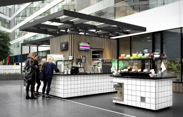 位于一樓的中庭主要是團(tuán)隊(duì)協(xié)作共創(chuàng)區(qū)、休閑區(qū)和大型吧臺服務(wù)區(qū)三大功能區(qū)塊,結(jié)合生機(jī)盎然的綠化共同交織而成一個(gè)開放、活力、精彩紛呈的時(shí)尚辦公空間。