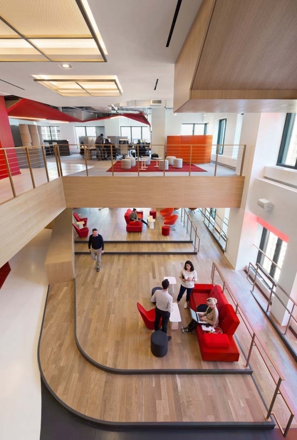 今天,上海辦公室裝修-領企裝飾要與大家分享的是,聞名全球的陽獅集團(Publicis Group)位于北美紐約的辦公室裝修設計。設計師打破摩天大樓固有的結構形式,打造了一個具有視覺延續(xù)性的內(nèi)部空間,巧妙的創(chuàng)建一個元素統(tǒng)一的有機工作社區(qū)。