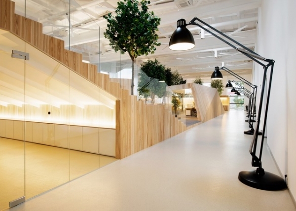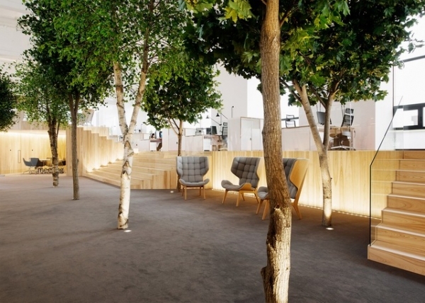 這是一個(gè)由廢棄工廠改建而成的兒童服裝公司辦公室裝修案例。設(shè)計(jì)師選擇原木作為*主要的設(shè)計(jì)元素制造出一些木屋,把它劃分為會(huì)議室、工作區(qū)、休息區(qū)等。辦公室里的公共區(qū)域還種植了五米高的樹木,在辦公室仿佛就置身森林,透過(guò)天窗和樹葉灑落的陽(yáng)光,讓人感受到一個(gè)綠意盎然、溫情脈脈的夏日。