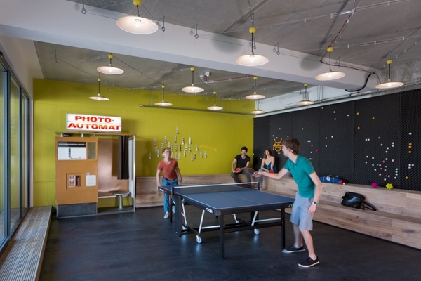 其辦公室裝修設(shè)計(jì)主要以現(xiàn)代的色彩為基調(diào),體現(xiàn)在辦公室墻面、地面、辦公家具以及吊頂?shù)难b修設(shè)計(jì)上。總而言之,SoundCloud柏林總部的辦公室裝修設(shè)計(jì)體現(xiàn)的是一種和諧、自然、環(huán)保的設(shè)計(jì)理念。