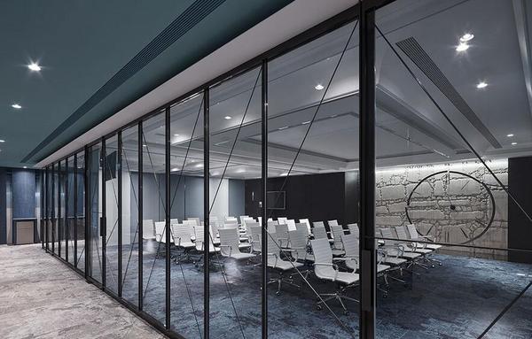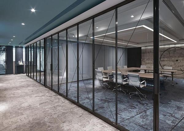 穿透性的鐵件玻璃組成會議室的區(qū)隔,除營造出空間層次,亦豐富視覺的通透感,讓空間和時(shí)間的存在穿透界線。會議空間的規(guī)劃使用活動式隔屏創(chuàng)造不同場地的轉(zhuǎn)換,在墻體開合間轉(zhuǎn)化不同尺度的空間量體,可自由變化小型會議室到百人視聽室的不同容納需求,創(chuàng)造更為善用的智能性空間。