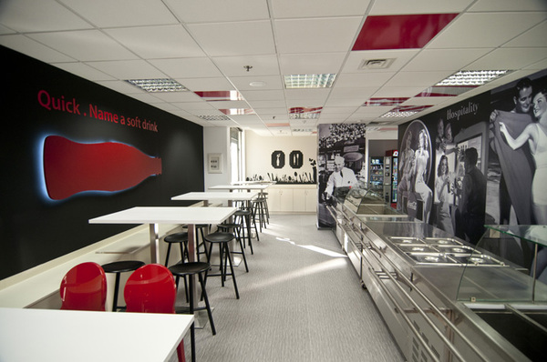 上海辦公室裝修公司-領(lǐng)企裝飾今天要與大家分享的是,Coca-Cola公司位于希臘總部的辦公室裝修設(shè)計。辦公室裝修設(shè)計采用了大片的白色與可口可樂經(jīng)典的紅色相搭配,清新悅目的色彩烘托出一個舒適、愉快的工作氛圍。