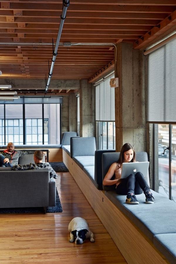 上海辦公室裝修公司-領企裝飾要與大家分享的是,舊金山Heavybit公司的辦公室裝修設計。本案設計理念表達圍繞其“靈透”,設計師在本案中大量使用了玻璃、銀色系列及淺色調的潔凈材料,如玻璃幕墻、銀質鋁塑板、水晶白麻石材、玻化磚等,圍繞本案主題,構筑個性化空間,該色彩搭配除了清透、雅致、穩(wěn)重、大氣之外,亦表現(xiàn)出一種力度感和效率感。滲透入貴機械制造企業(yè)之“清透感”,亦反襯企業(yè)之“柔美感”。