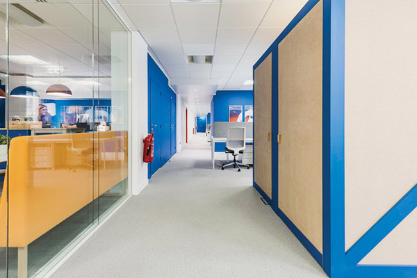 電子商務(wù)公司辦公室的品牌標志多與顏色有所關(guān)聯(lián),在辦公區(qū)域設(shè)計的時候,設(shè)計師采用了由淺至深的顏色分布,表現(xiàn)企業(yè)的陽光積極,這也表現(xiàn)電子商務(wù)行業(yè)公司辦公室裝修的時尚元素。