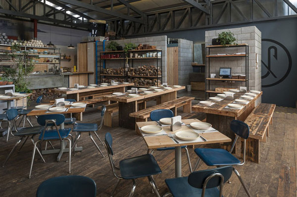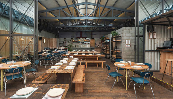 設(shè)計師在設(shè)計的時候,刻意選用破舊的木質(zhì)元素,藍色的餐椅搭配讓人聯(lián)想到海邊的某個小酒館,身處其中便能感受到熱鬧的海邊氛圍。