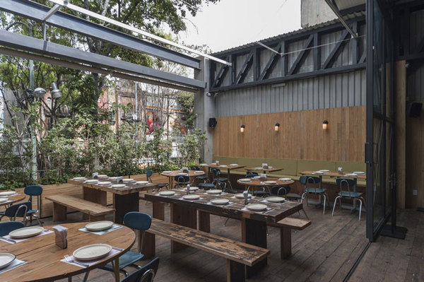 設(shè)計師還設(shè)計出一個臨街的室外餐廳,可打開或合起的遮陽棚讓就餐的顧客可以感受到不同的氛圍。