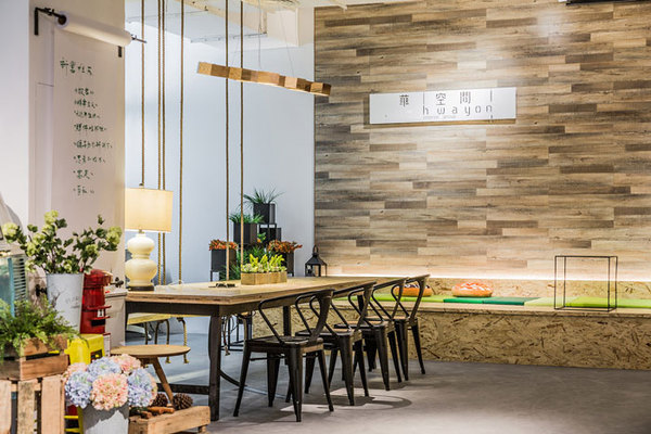 會議室的設(shè)計,三塊玻璃隔斷加上彩繪,既有效的隔離出會議空間,又節(jié)約成本,同時與空間相互融合。