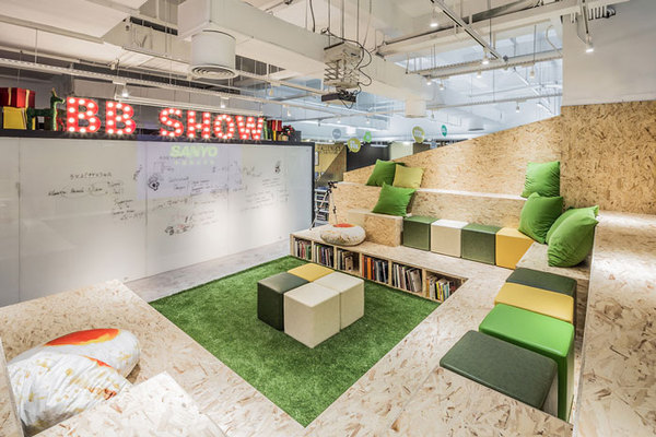 辦公區(qū)域的設(shè)計,設(shè)計師將奇思妙想融入空間,交流區(qū)域的背部被設(shè)計師開發(fā)出各式各樣的洞口,為的就是安置辦公設(shè)備,以此滿足辦公需求,真可謂是創(chuàng)意無限。
