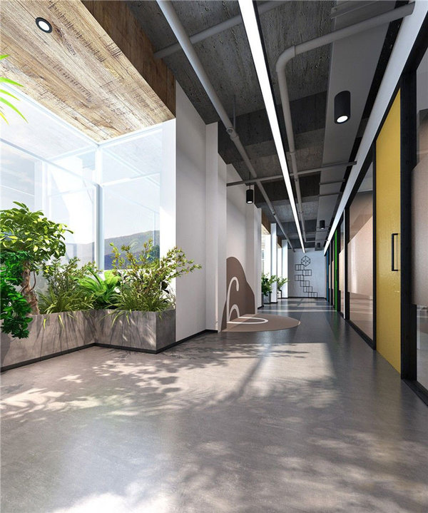 過道區(qū)域的設(shè)計(jì):設(shè)計(jì)師在設(shè)計(jì)的時(shí)候,以點(diǎn)綴為主要設(shè)計(jì)目的,硬裝之余以綠植做為主要的點(diǎn)綴飾物,將自然很好的引入室內(nèi)。