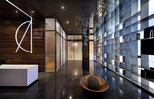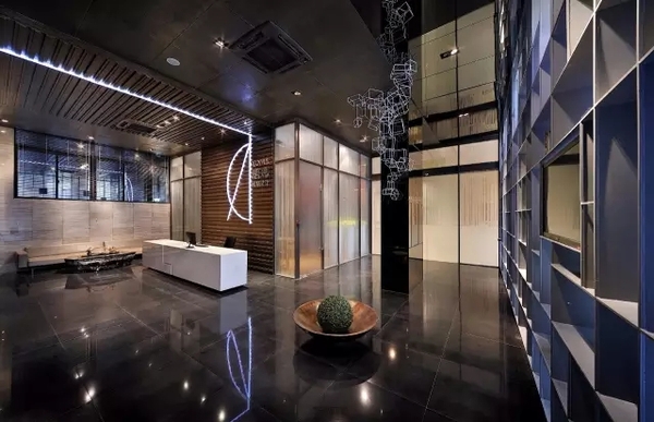 前臺對面的墻面處,擺放著一個傳統(tǒng)中式的柜體,黑色的大漆外表點(diǎn)綴著赤色的朱砂,體現(xiàn)出骨子里的我國精力以今世的審美視覺體現(xiàn)東方的空間氣質(zhì)。