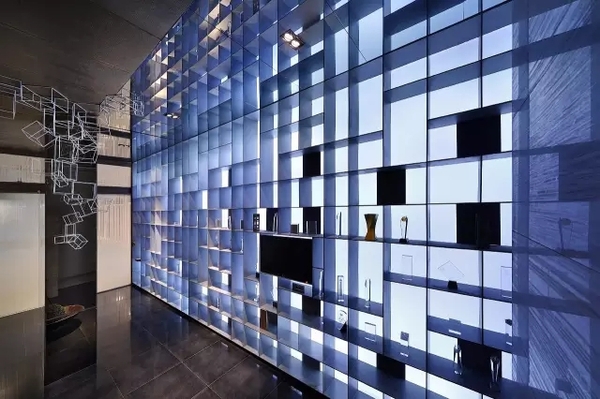 平面與立面的構(gòu)成在這個區(qū)域被潛移默化的表達(dá)出來,闡述著今世的解構(gòu)主義理念,實(shí)在、虛幻以及兩者的聯(lián)系。格子內(nèi)陳設(shè)著各項(xiàng)世界新的榮譽(yù)。在此基礎(chǔ)上,是非的界面在燈火的效果下煥宣布異樣的視覺感染力。