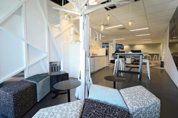 其辦公室裝修設(shè)計(jì)從平面布局彰顯出MYOB的品牌理念:高度的自主性,員工可以自由選取自己喜愛(ài)的工作方式。靚麗的色彩、時(shí)尚的家具,令這里充滿(mǎn)青春活力。