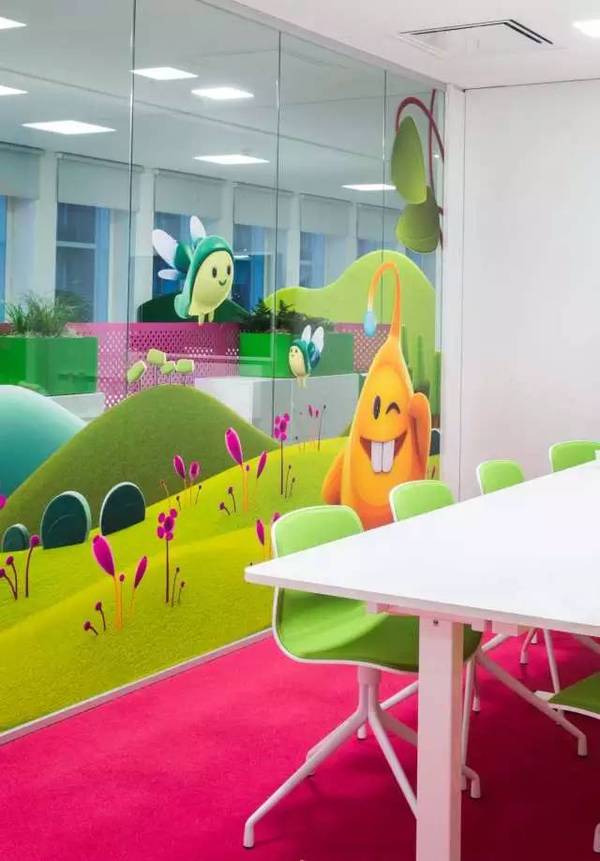 游戲開發(fā)商國王(“糖果粉碎傳奇”的創(chuàng)造者)聯(lián)系設(shè)計(jì)師開發(fā)他們的新辦公室概念,其結(jié)果是一個(gè)色彩鮮艷的辦公室。