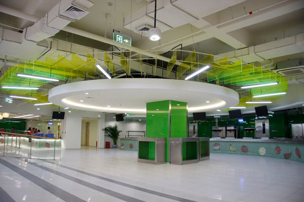 辦公室餐廳的設(shè)計(jì)沿用了整齊劃一的一貫風(fēng)格,值得注意的是360總部餐廳的墻面采用的是亮橙色的色調(diào),跟色彩心理學(xué)的理論不謀而合,因?yàn)槌壬鬃寙T工產(chǎn)生饑餓感而胃口大開(kāi)!