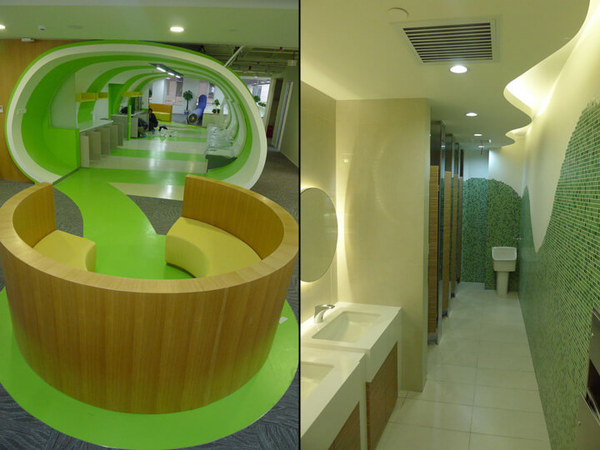 辦公室休息區(qū)和茶水間再次用它們?cè)煨酮?dú)特的辦公室裝修設(shè)計(jì)來(lái)突出“360綠”在整個(gè)品牌甚至企業(yè)滲透到細(xì)節(jié)的滲入影響,在讓員工耳目一新、眼前一亮的同時(shí),跟*近的新聞?lì)^條也很應(yīng)景呢。