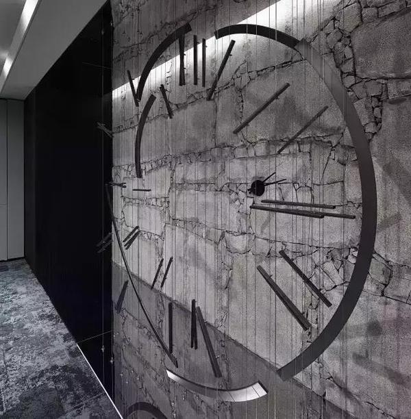 主辦公室墻面使用不銹鋼材質(zhì)搭配在隨性的是墻上拼成"Time is Money",標志著企業(yè)形象與宗旨,代表著工業(yè)時代經(jīng)濟快速發(fā)展的時間流動。背墻則以不經(jīng)刻意的仿舊石材創(chuàng)造中世紀堡壘材質(zhì),結(jié)合古今元素,間接扣合起「時間」的主軸。