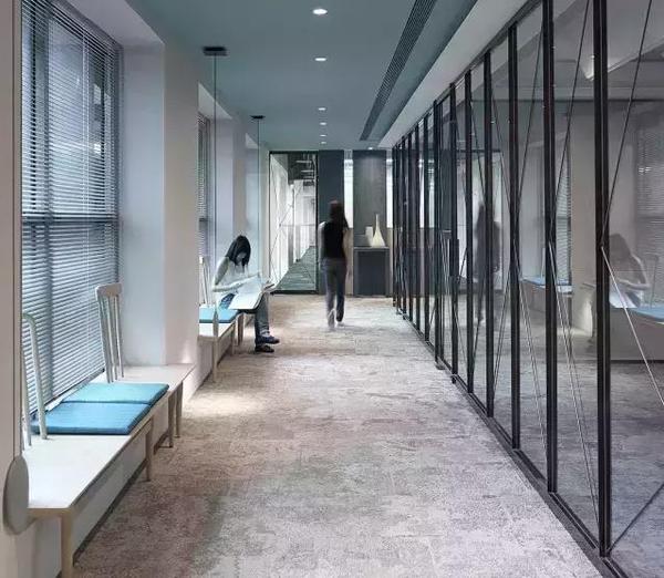 辦公室的空間分配很關(guān)鍵,主廊道及茶水間設(shè)置木質(zhì)開放式座椅提供閱讀、討論與休憩,讓辦公室空間營造出流動性的時間暫留,讓人們在忙碌之余有一個小憩之場。