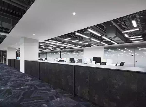 公共辦公區(qū)以黑色系為主體裝修色調(diào),莊重、嚴正的辦公環(huán)境象征著堅毅的目標、包含著權(quán)益的決策。白熾燈簡單大氣,統(tǒng)一的布局相同的配置使公司更具凝聚力,偌大的公共辦公空間彰顯公司大氣,同時也方便人們的交流。