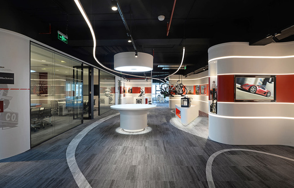 上海領(lǐng)企創(chuàng)裝飾公司分享的這套網(wǎng)絡(luò)科技辦公室裝修設(shè)計(jì)圖中,辦公室前臺(tái)及展廳的設(shè)計(jì)采用了弧形墻體,墻體上的弧形燈帶、天花上的吊燈以及不同顏色地毯拼接而產(chǎn)生曲線元素貫穿整個(gè)展廳空間,帶來極強(qiáng)的視覺延伸感。配合了VR等互動(dòng)體驗(yàn)裝置,以及實(shí)體產(chǎn)品,為訪客帶來富有科技感的體驗(yàn)感受。提高空間的功能性和使用效率,大會(huì)議室可以在需要的時(shí)候由移動(dòng)隔斷分割為兩個(gè)獨(dú)立的會(huì)議室使用。下面領(lǐng)企設(shè)計(jì)創(chuàng)裝飾公司小編帶大家看一下1200科技公司辦公室裝修案例!