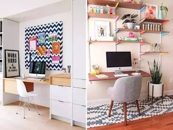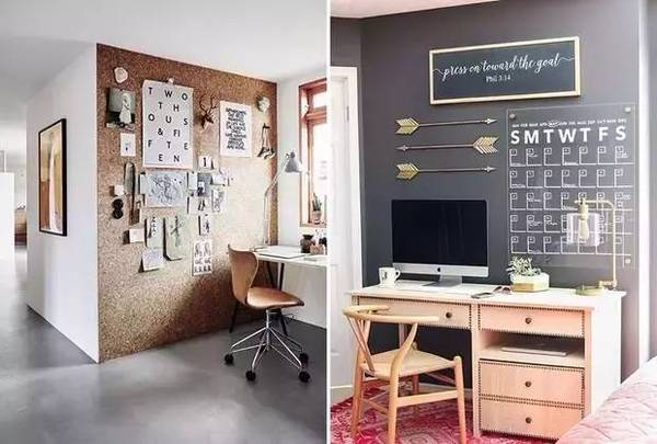 自由職業(yè)或是平時(shí)的工作沒(méi)有很強(qiáng)烈的需求的話,那就把它打扮的創(chuàng)意滿滿吧!像軟木墻或是任務(wù)墻這種墻面裝飾**是吸睛的打扮~
