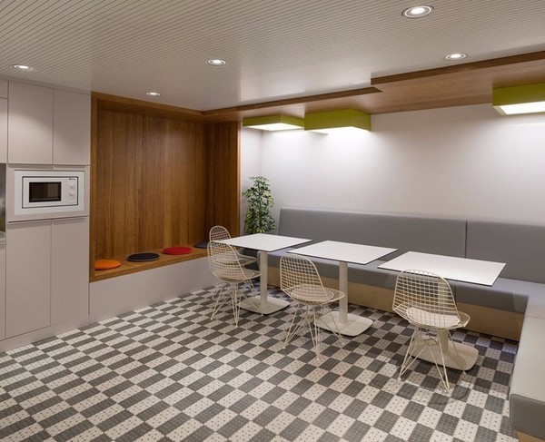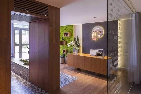 辦公室是建立在一個(gè)室內(nèi)的庭院之中的,雖然辦公空間是圍繞著室內(nèi)的小花園的,但事實(shí)上,室內(nèi)的設(shè)計(jì)與其說(shuō)是辦公室倒更像是圍繞著小花園的休息和活動(dòng)空間。種植著綠色植物的露天小花園中擺放著用以休息閑聊的簡(jiǎn)單的家具,綠色是這里的主題,而用以分隔小花園和辦公空間的既不是堅(jiān)實(shí)的墻壁,也不是活動(dòng)的玻璃門,設(shè)計(jì)團(tuán)隊(duì)選用了落地窗來(lái)包圍這個(gè)公司員工每天都在使用的戶外小空間,以此創(chuàng)造了室內(nèi)外空間的連續(xù)性。