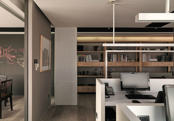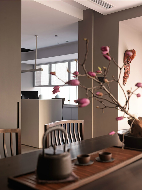 中式風格辦公室設計非常講究空間的層次感,依據(jù)辦公室使用人數(shù)和私密程度的不同,需要做出分隔的功能性空間,一般采用“啞口”或簡約化的“博古 架”來區(qū)分;在需要隔絕視線的地方,則使用中式的屏風或窗欞,通過這種新的分隔方式,通常的辦公室就展現(xiàn)出中式家居的層次之美。