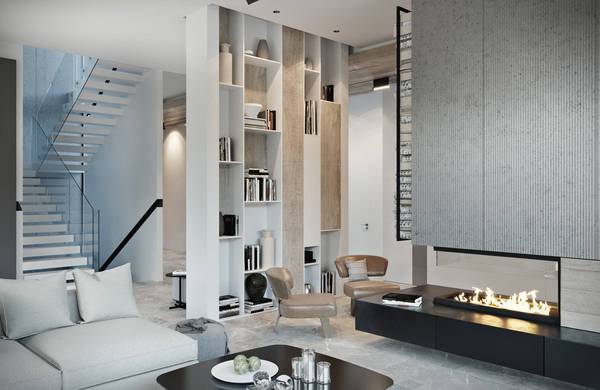 這個現(xiàn)代化的室內(nèi)是為離莫斯科不遠的私人住宅而建的。使用簡單廉價的材料和一些昂貴的家具,但取得了良好的效果。