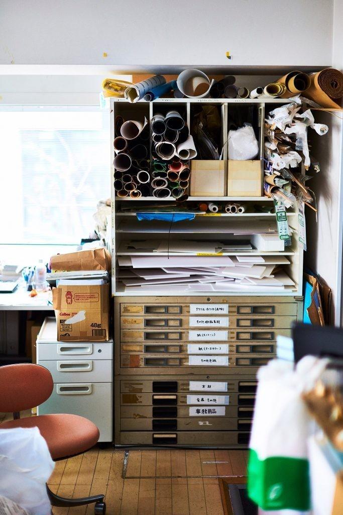 相較于伊東豐雄作品中一貫的簡(jiǎn)潔線(xiàn)條,他的辦公室卻意外地被一疊又一疊的合約文件掩埋??闪鑱y的文件似乎以另一種美感沖擊的觀(guān)者的視野,讓我們?cè)诓煌珘K毫無(wú)規(guī)律的羅列中,體味到設(shè)計(jì)師的隨手之美。