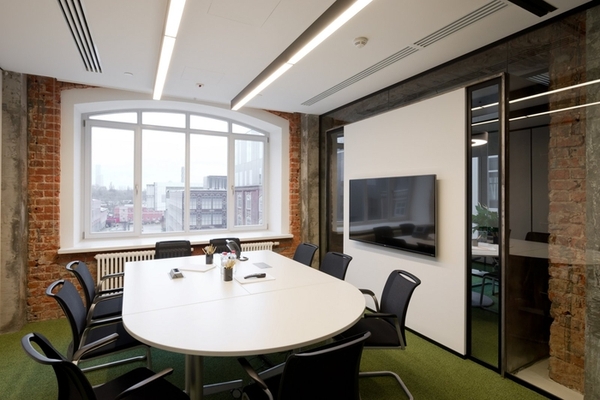 會(huì)議室設(shè)計(jì)可以根據(jù)對(duì)內(nèi)或?qū)ν獠煌枨筮M(jìn)行平面位置分布。按照人數(shù)則可分為大會(huì)議室、中型會(huì)議室和小會(huì)議室。常規(guī)以會(huì)議桌為核心的會(huì)議室人均額定面積為0.8平,無(wú)會(huì)議桌或者課堂式座位排列的會(huì)議空間中人均所占面積應(yīng)為1.8平。會(huì)議室兼顧了對(duì)外與客戶溝通和對(duì)內(nèi)召開(kāi)機(jī)構(gòu)大型會(huì)議雙重功能,基本配置有投影屏幕、寫字板、儲(chǔ)藏柜、遮光等。在強(qiáng)弱電設(shè)計(jì)上,地面及墻面應(yīng)預(yù)留足夠數(shù)量的插座、網(wǎng)線;燈光應(yīng)分路控制或?yàn)榭烧{(diào)節(jié)光。根據(jù)客戶的要求考慮應(yīng)設(shè)麥克風(fēng)、視頻會(huì)議系統(tǒng)等特殊功能。