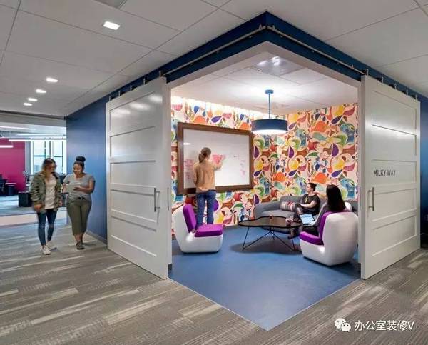 豐富的色彩、動感的線條、奇異的家具,天馬行空的設計元素在空間得以實現(xiàn),大膽的布局滿足了員工的幻想,構建出神秘美好的“辦公小天地”。
