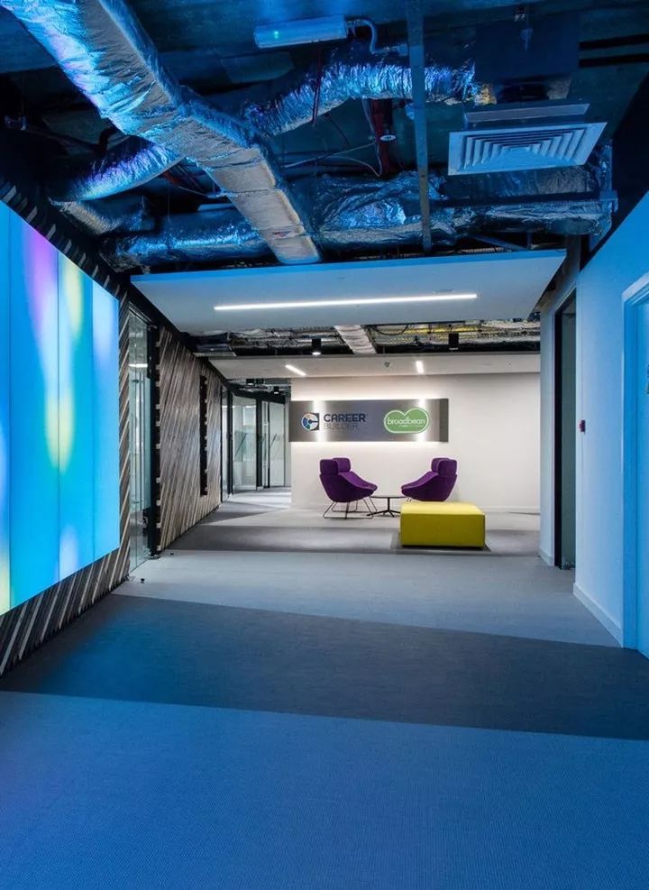 精美的空間構(gòu)造和細(xì)節(jié)處理,令人深刻印象。在灰色和白色的純凈基調(diào)里,注入了純美的紫色、亮黃和綠色,塑造出一個時尚摩登且又有著唯美意境的現(xiàn)代辦公空間。**實(shí)現(xiàn)客戶的愿景,為員工與訪客創(chuàng)建了一個激蕩思維的靈感空間。