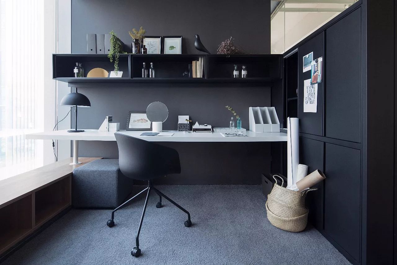 9㎡部門經(jīng)理辦公室,在功能布置上做了很大的改變和創(chuàng)新,所有的功能構(gòu)件沿著空間四周墻面布置,儲(chǔ)物、辦公、休閑、閱讀及交流等,非常巧妙的銜接,使得小面積卻擁有寬敞舒適之感。