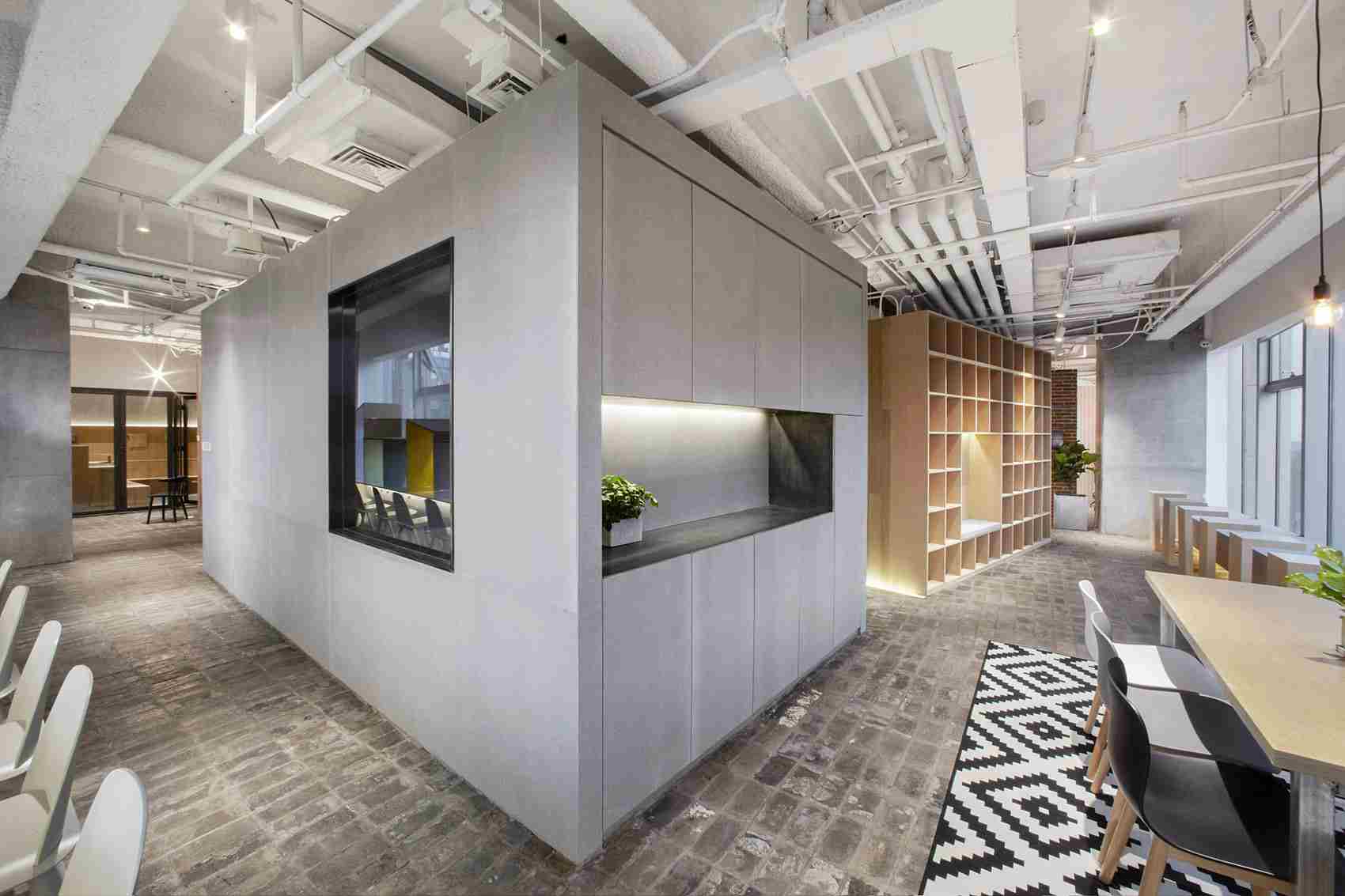 項(xiàng)目位于一座辦公樓內(nèi),業(yè)主租賃三個(gè)房間作為學(xué)校的辦公和培訓(xùn)區(qū)域。為了整合全部的空間的使用,設(shè)計(jì)師將其打通成為一整個(gè)房間。