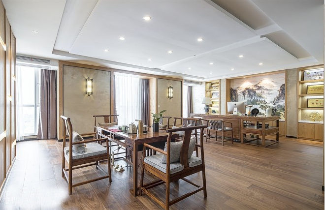 總經(jīng)理的辦公室裝飾也要與辦公室的整體裝修風(fēng)格相一致,不應(yīng)該有風(fēng)格的多樣性,這只會(huì)給人一種無序的建筑感覺,影響整個(gè)辦公室的美感。簡單的中式設(shè)計(jì)或現(xiàn)代風(fēng)格的穩(wěn)健設(shè)計(jì),摒棄了對風(fēng)格外觀的追求,簡化了其復(fù)雜性,并將其作為設(shè)計(jì)的核心來表達(dá)和接受。設(shè)計(jì)師在情感、文化、氣質(zhì)、身份層面上尋找一種接觸、溝通、協(xié)調(diào)的方式,以表達(dá)人們對新辦公室的精神渴望。