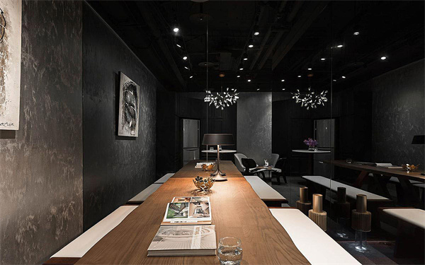 2、現(xiàn)代風(fēng)辦公室茶水間裝修設(shè)計(jì):壁面刷上特殊漆,利用手繪的溫度創(chuàng)造視覺層次,結(jié)合主燈及點(diǎn)狀燈的光影烘托,**提升空間質(zhì)感。此外,茶水間內(nèi)部除了擺設(shè)圓桌、跳色單椅外,更安排了一張木質(zhì)長桌,增加座位席,同時(shí)亦為空間注入溫潤感受,更運(yùn)用收納高柜將各式電器藏于立面中,辦公室設(shè)計(jì)師巧手將坪效發(fā)揮得****,打造宛如VIP等級(jí)的休憩空間。