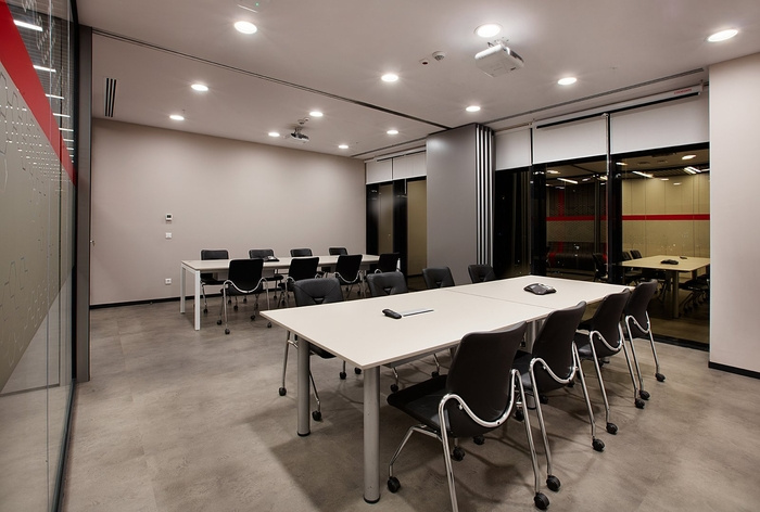 2、其次在上海辦公室設(shè)計(jì)時(shí),會(huì)議室常常被傳統(tǒng)的分割成單獨(dú)房間,然而有時(shí)候因?yàn)楣镜娜藬?shù)原因無法進(jìn)行統(tǒng)一的大會(huì),但若是規(guī)劃了大型會(huì)議室就又會(huì)導(dǎo)致會(huì)議室數(shù)量減少從而使用不便。針對(duì)于這種情況在辦公室裝修時(shí)規(guī)劃出一個(gè)大會(huì)議室,然后使用活動(dòng)隔斷將其分開,當(dāng)需要多人統(tǒng)一開會(huì)時(shí)便可以將活動(dòng)隔斷打開增加會(huì)議室面積。這樣不僅節(jié)省空間也能使空間更為靈活。
