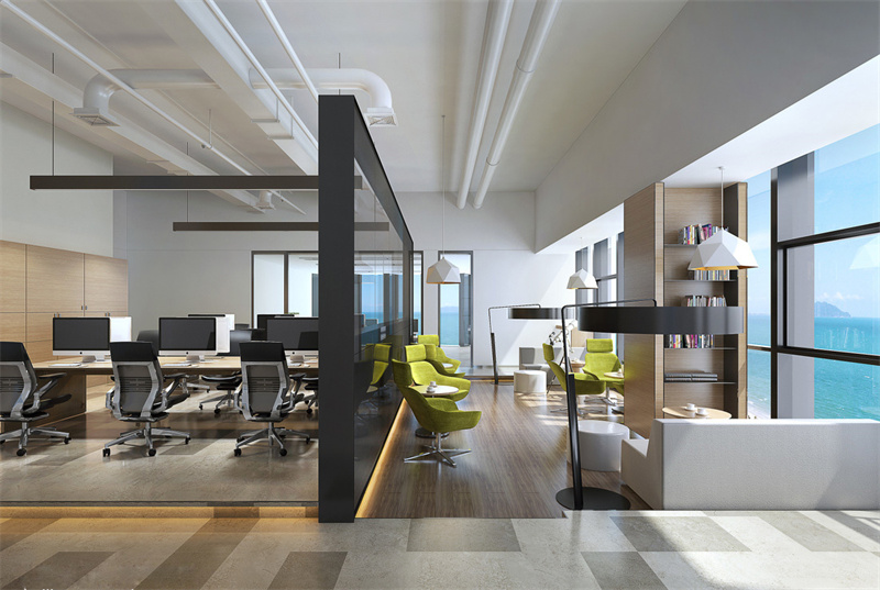 景觀式辦公室空間是一般較時(shí)尚的企業(yè)所采用的一種辦公室裝修格局。這種方式通常采用不規(guī)則的桌子擺放方式,室內(nèi)色彩以和諧、淡雅為主,并用盆栽植物、高度較矮的屏風(fēng)、櫥柜等進(jìn)行空間分隔,在風(fēng)景如畫的辦公空間中工作可以放松身心,增強(qiáng)員工的工作熱情。