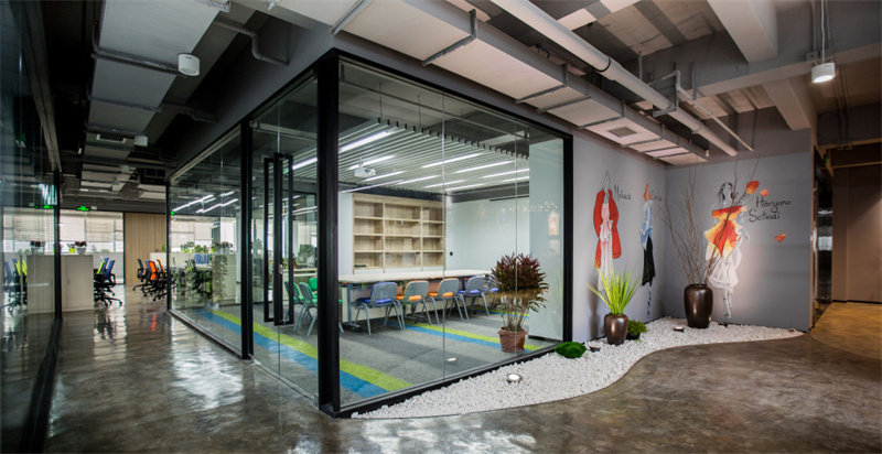 2、其次如果在辦公室的設(shè)計規(guī)劃中,不能完全使用原墻的話,可以拆掉一些使部分隔墻再利用。例如一些茶水柜和小的獨立房間可以使部分原有隔墻再利用,一些用于做休閑活動區(qū)的地方還可以借助部分原有隔墻做一些閱讀階梯等設(shè)施,省去了新建隔墻的人力物力。另外也可以在部分原墻面后面接上新建隔墻使用,這樣也更能節(jié)省。