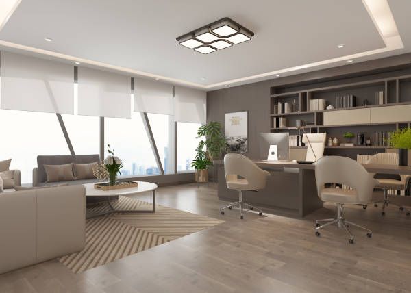 總經(jīng)理辦公室設計中顏色搭配很重要,比如:黃色、橙色、紅色、藍色等,多種顏色搭配在一起給人一種活潑跳躍的感覺;選擇大面積白色給人一種明亮感;棕色給人穩(wěn)重成熟感??偨?jīng)理辦公室裝修很少使用色差大的顏色,一般都是灰色、棕色等作為主色調。黑與白的搭配空間、強烈的色彩反差或是全部淺色調處理的素雅搭配,這兩種截然不同的配色方案都可以滿足您時尚前沿的領導辦公室設計設計的需求。云杉、淺橡木、樺木、櫻桃木、梣木五種淡雅明快的款式搭配上中淺色系的家具,簡約時尚的風格就在不經(jīng)意間形成了。BOSS的辦公室裝修設計可以選用深色系。一個企業(yè)的領導,應該有著不同于員工的威嚴,用深色系可以襯托出權威和莊重,再配以清新亮麗的顏色配飾作為點綴,莊重不顯沉悶,使得看起來不會很壓抑。