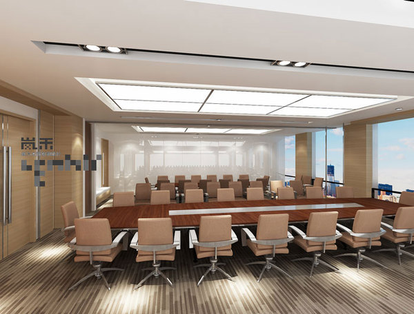 會(huì)議室的設(shè)計(jì),設(shè)計(jì)師一邊利用窗簾來調(diào)節(jié)視覺效果,同時(shí)在另外兩側(cè)安排條形桌,來擴(kuò)充不同的人員參會(huì),設(shè)計(jì)上也是由淺及深,整個(gè)空間顯得比較沉穩(wěn),嚴(yán)肅而靜謐。